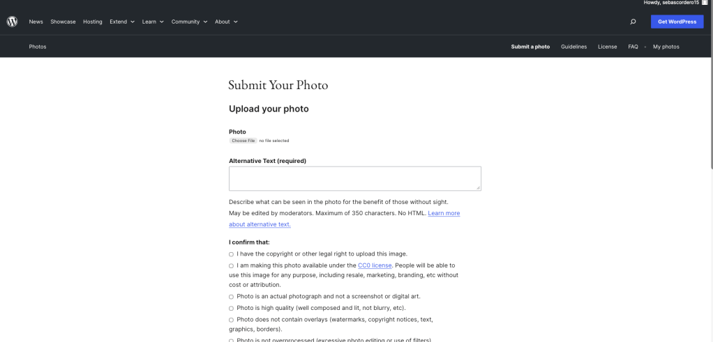Ingresar a https://wordpress.org/photos e iniciar sesión.